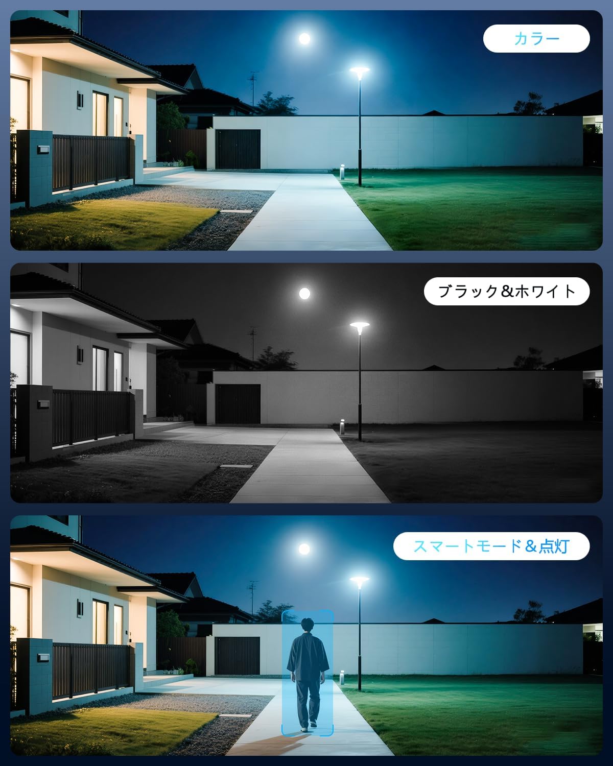 3264x2488 high resolution security camera ensures the safety of people and home 24/7. See everything within 24 meters even at night. IR-LED system automatically activates infrared mode in dark places. -
