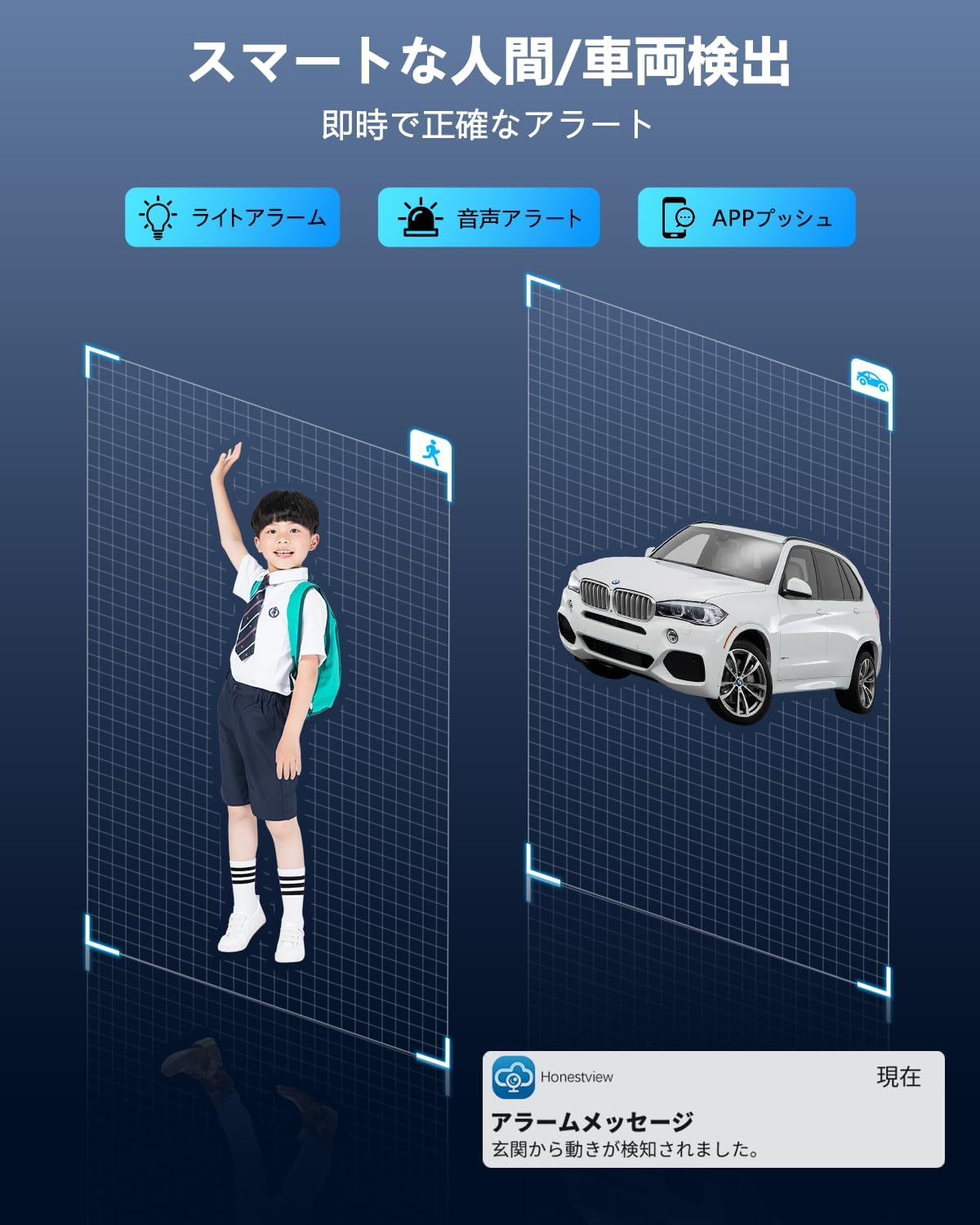 [AI human body detection]The camera has updated cutting-edge AI humanoid computing technology, which can effectively identify people, animals and other objects in the surveillance area, marking them with a red frame and notifying the owner via APP or email. |